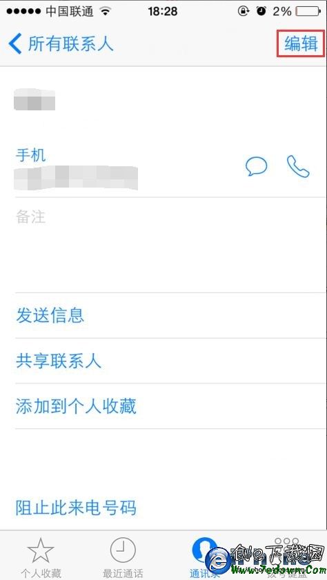 如果你追求個性鈴聲的話,那麼下面這個小技巧你肯定不能錯過,教你讓iPhone6S為不同的聯系人設置不同鈴聲方法教程。 步驟1:在手機通訊中點開一個聯系人的詳情頁面,然後點擊右上方“編輯”按鈕。