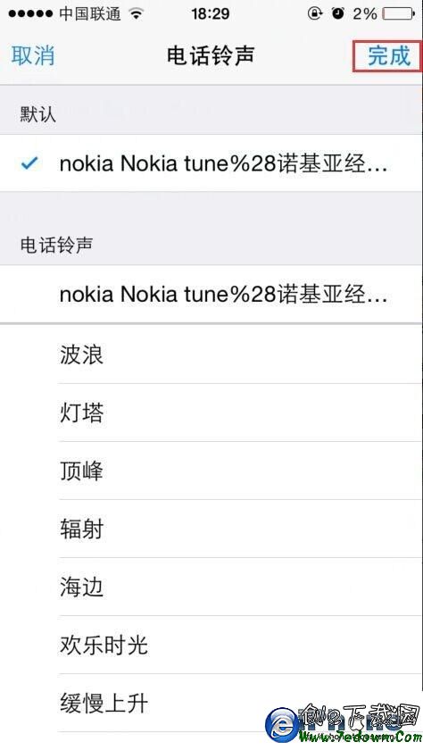 步驟3:為該聯系人點選一個專屬的鈴聲類型,再點右上方“完成”按鈕即可。