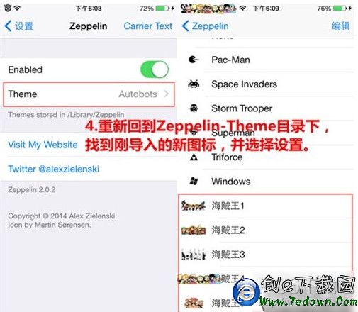 第四步,重新回到Zeppelin-Theme目錄下就可找到剛導入的新圖標,並選擇設置。