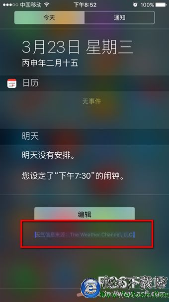 據悉,觸發小藍點,只要在將通知中心打開,然後往下拉,像復制文字一樣全選底部的“天氣資料來源”整句文字,然後點擊Home鍵,神奇的事情出現了,小藍點還不時會自動移動,有時會跑去屏幕左上角,唯一的消除方法就是重新啟動。