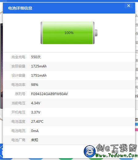 三、您可以點擊“電池效率”後方的電池詳情,查看更新的電池信息。可以詳細查看電池容量、序列號等詳細信息。