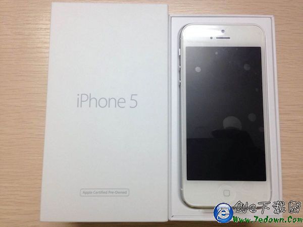 與置換機只有一個單機頭不同,官翻機出廠時帶有包裝且搭配了全新的配件,下圖為官翻 iphone5 的包裝,白盒,且盒子上印有“Apple Certified Pre-Owned”