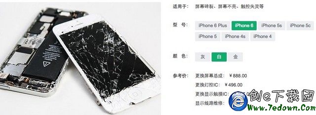 雖然在保修期內,蘋果對這種人為損壞統一不予保修,沒有購買AppleCare+的維修費用是628元,優勢是保證原廠,維修無後患,不足是價格較高,這還算蘋果官方維修價格最低的一款,iPhone6s Plus的屏幕維修價格高達1100元。