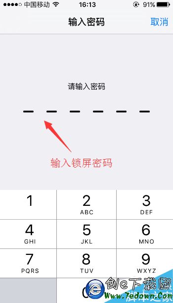 2.當我們設置了鎖屏密碼的時候,這時就會彈出“輸入密碼”的頁面,在這裡我們輸入所設置的鎖屏密碼。