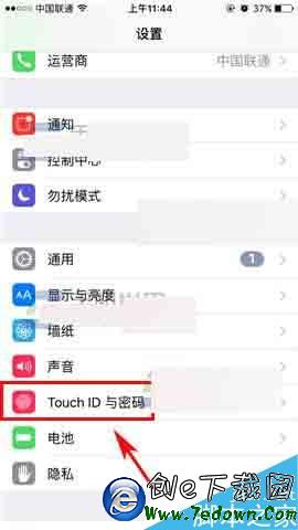 1)首先我們先打開【設置】,然後找到【Touch ID與密碼】,打開後輸入密碼點擊右上角的【完成】。(如下圖)