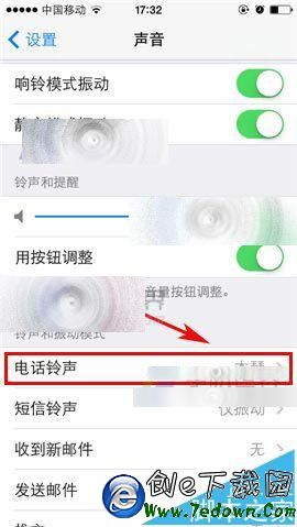 1)首先我們先打開【設置】,然後找到【聲音】,打開後點擊【電話鈴聲】或其他。(如下圖)
