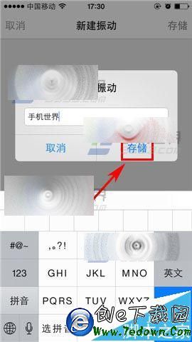 3)打開後按要求觸摸屏幕設置振動效果,設置完後點擊右上角的【存儲】,接著再輸入你的名稱點擊【存儲】就可以了。(如下圖)