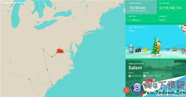 點擊“訪問”圖標後,谷歌地圖將會向你提供關於聖誕老人旅程的更多信息,例如旅行總距離、他目前為止送出的禮物數量,又或者是他的下一站等。