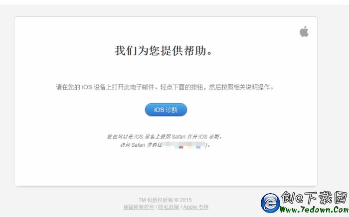 6. 郵件如圖,如果你在手機上無法打開診斷按鈕,可以通過 Safari 浏覽器進行相關的操作。