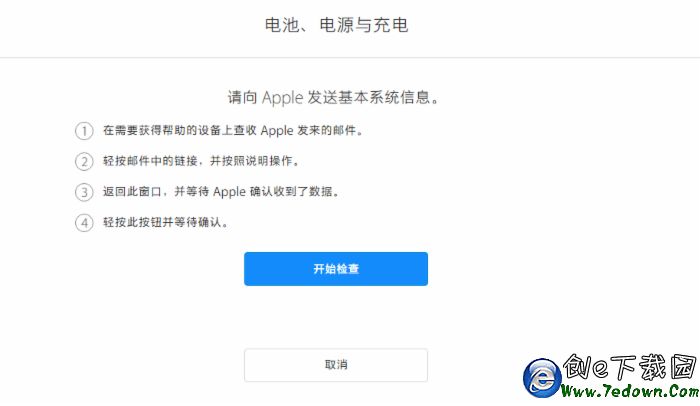 7. 當你在手機上打開郵件,並且完成故障檢測,將數據傳送回蘋果後,就可以點擊網頁上的“開始檢查”了,檢查通過後,你還可以選擇是通過電話聯系客服還是在線聊天聯系客服,選擇在線聯系客服的話可以直接打開對話窗口。