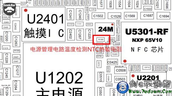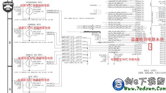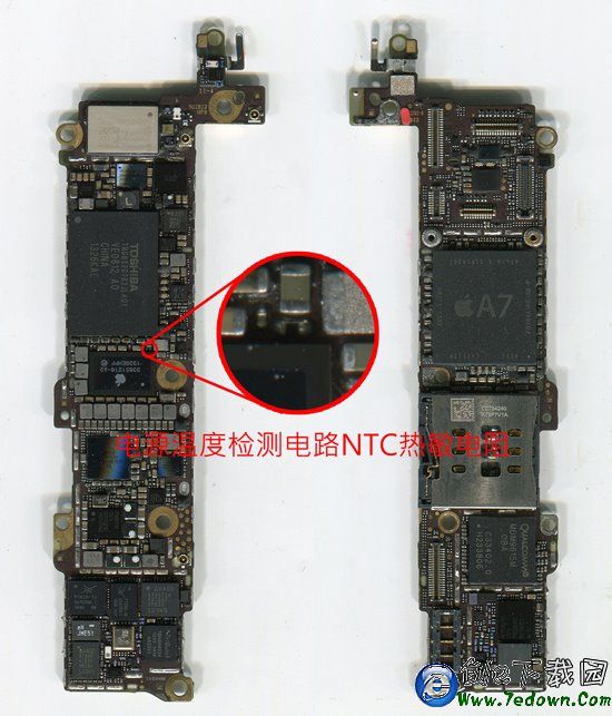 在iPhone的電路原理圖中可以看到在iPhone的多個電路中嵌入NTC(Negative Temperature Coefficient的縮寫。其含義為負溫度系數。)熱敏電阻。