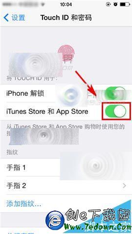 2)接著輸入你的【鎖屏密碼】,最後打開【iTunes Store和App Store】右邊滑塊即可。(如下圖)