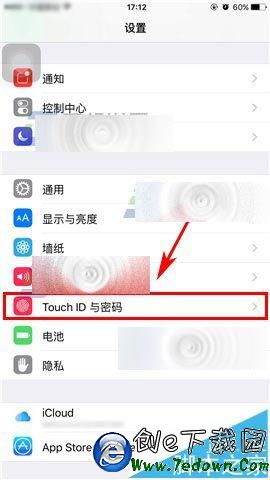 1)點擊【設置】,進入後點擊【Touch ID與密碼】。(如下圖)