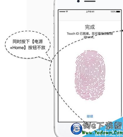 4.另外也可以通過強制重新 iPhone 手機來實現,同時按下【主屏Hone+電源】二個按鈕不放,如圖所示