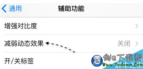 2.當 iOS9 出現動畫效果消失的問題時,此時在進入【設置-通用-輔助功能】列表中,可以看到有一個【減弱動態效果】功能,如圖所示