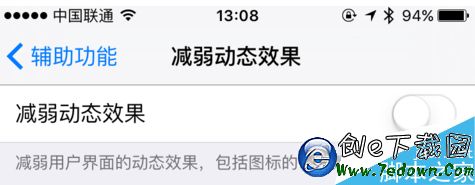 1.個人在使用 iPhone6s 時,當前也是升級到了最新的 iOS9.1 版本,記得在此之前也遇到過動畫效果消失的問題。不知道是系統的問題,還是與一些第三方軟件的兼容性出現的問題。當出現這個問題以後,就跟在系統關閉了動畫視覺特效一樣。如下圖所示,當在系統中打開了【減弱動態效果】選項以後,在解鎖、返回應用程序時便看不到過度的動態效果了。