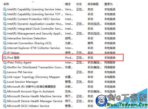 8、找到名為“iPod服務”的選項,同樣方法,雙擊打開