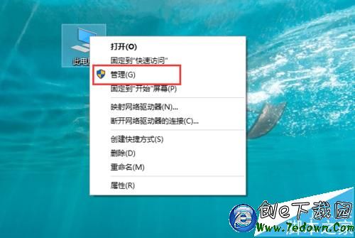2、在桌面上右鍵點擊“此電腦”(此處為Windows 10,其他版本系統方法類似),在彈出的菜單中選擇“管理”