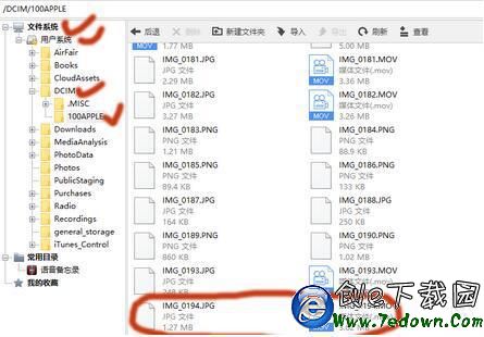 然後依次進入目錄【文件系統】-【用戶系統】-【DCIM】-【100APPLE】(有些人不是100APPLE,可能是101,102,總之打開數值最大的一個。)