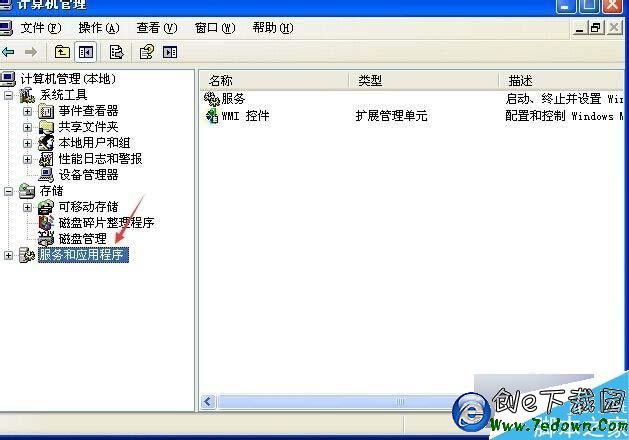 3、點擊展開服務和應用程序選項,再在它選項下找到“服務’選項,找到服務選項後,再點擊打開它;