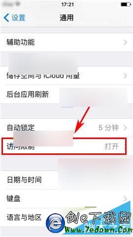 1)在設置界面點擊【通用】進入,再點選【訪問限制】。(如下圖)