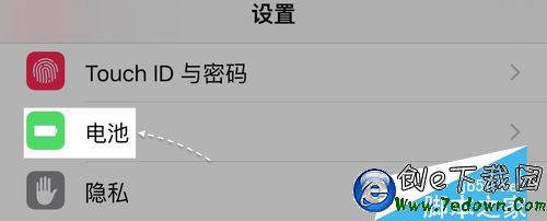 2.如下圖所示,在設置列表中增加一個“電池”功能,點擊它進入。