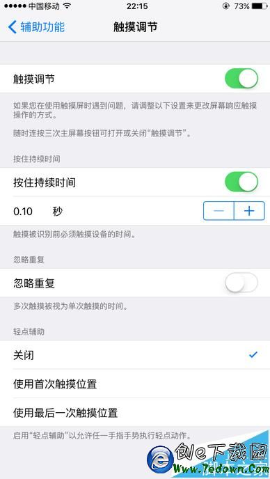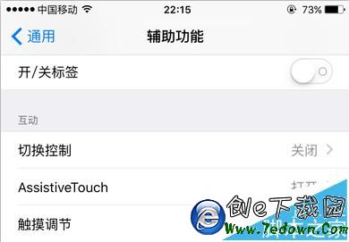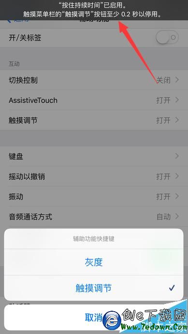 8、返回到原來的輔助功能頁面,這時【觸摸調節】是處於開啟狀態
