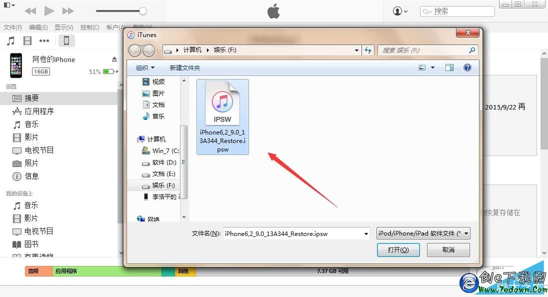 4.iTunes會彈出對話窗--請選擇已經下載好的固件--點擊更新--等待iTunes運行。