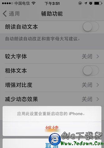 3、手機自動重啟 打開選項之後,系統會彈出一個關於重啟設備的咨詢窗口,點擊“繼續”即可!