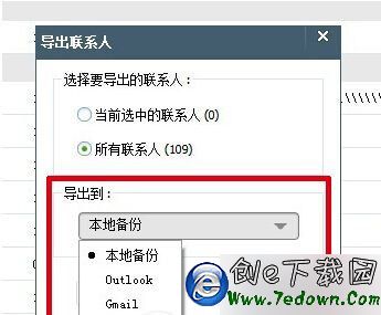 iTools一共為我們提供了包括本地備份、Outlook、Gmail、CSV和VCF五種導出模式,我們可以根據需要選擇不同的類型。