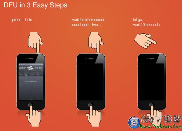 如果在更新過程中遭遇白蘋果等問題,也不要擔心,直接使用DFU模式進行更新即可。進入DFU模式也很簡單,在關機的情況下,同時按住“電源鍵”和“Home”鍵開機,當出現蘋果Logo時松開電源鍵,繼續保持按住“Home”鍵一段時間,之後iOS設備便會進入DFU模,然後使用數據線連接到iTunes,然後按照上述方法正常刷入對應固件包即可。