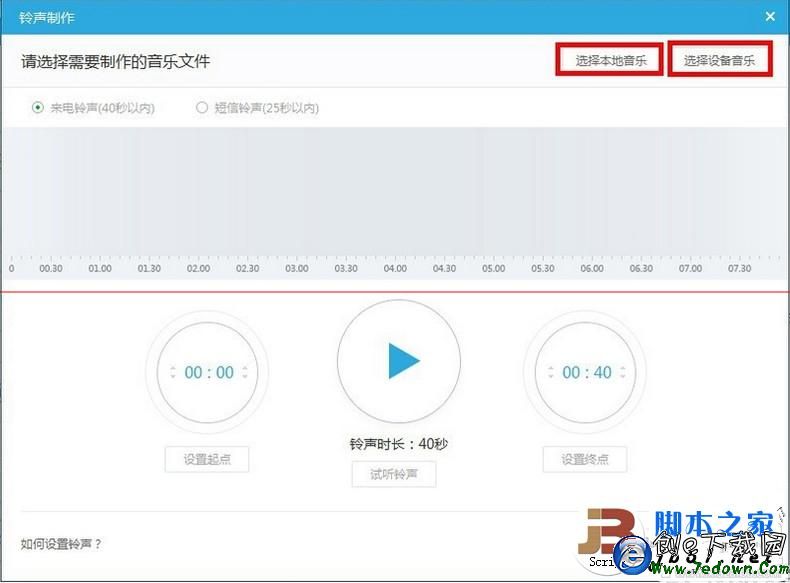 2、選擇電腦本地或者你手機設備裡的歌曲設置鈴聲