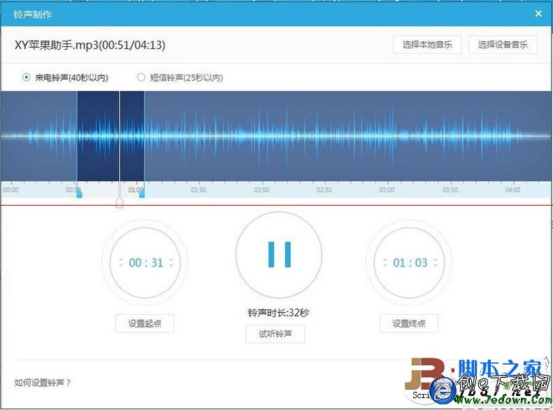 3、可自定義設置起點和終點,也可以試聽制作的鈴聲