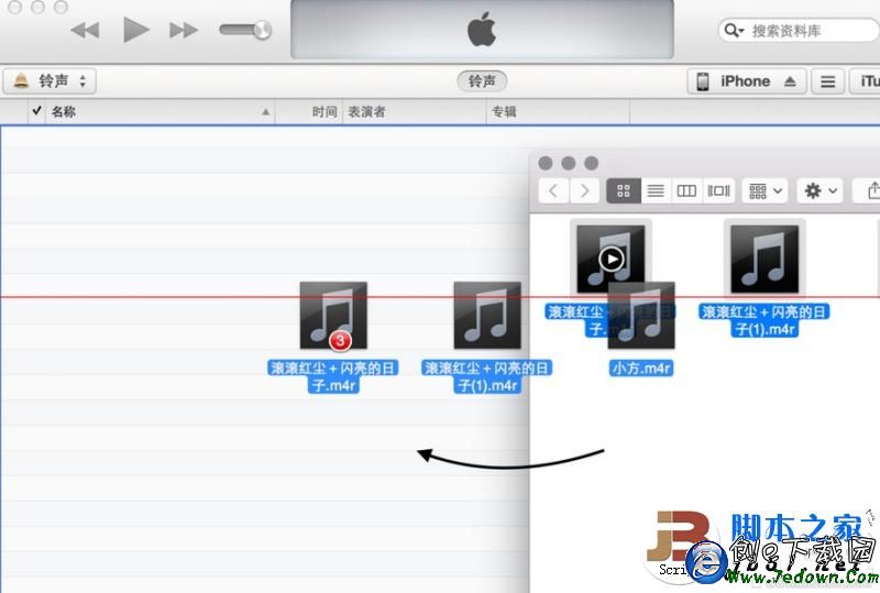 3、把從 iPhone 上導出的鈴聲文件拖到 iTunes 的鈴聲窗口中