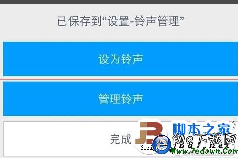 3、隨後可以看到提示鈴聲已經保存在百度音樂的“設置-鈴聲管理”中。由於 iPhone 系統的限制,不能直接在手機上把剛剛制作的鈴聲設置為鈴聲,所以這裡點擊“完成”按鈕