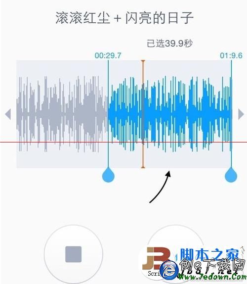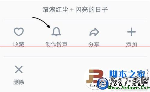 2、接著請選擇“制作鈴聲”選項。隨後進入鈴聲制作界面,在這裡可以自己動手在歌曲中選擇一段來作為鈴聲。鈴聲長度最長39.9秒,可以縮短,不能加長。好了以後點擊“勾勾”完成。