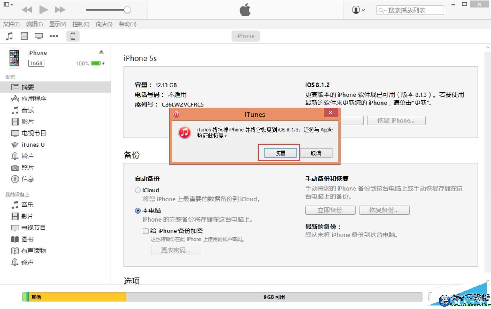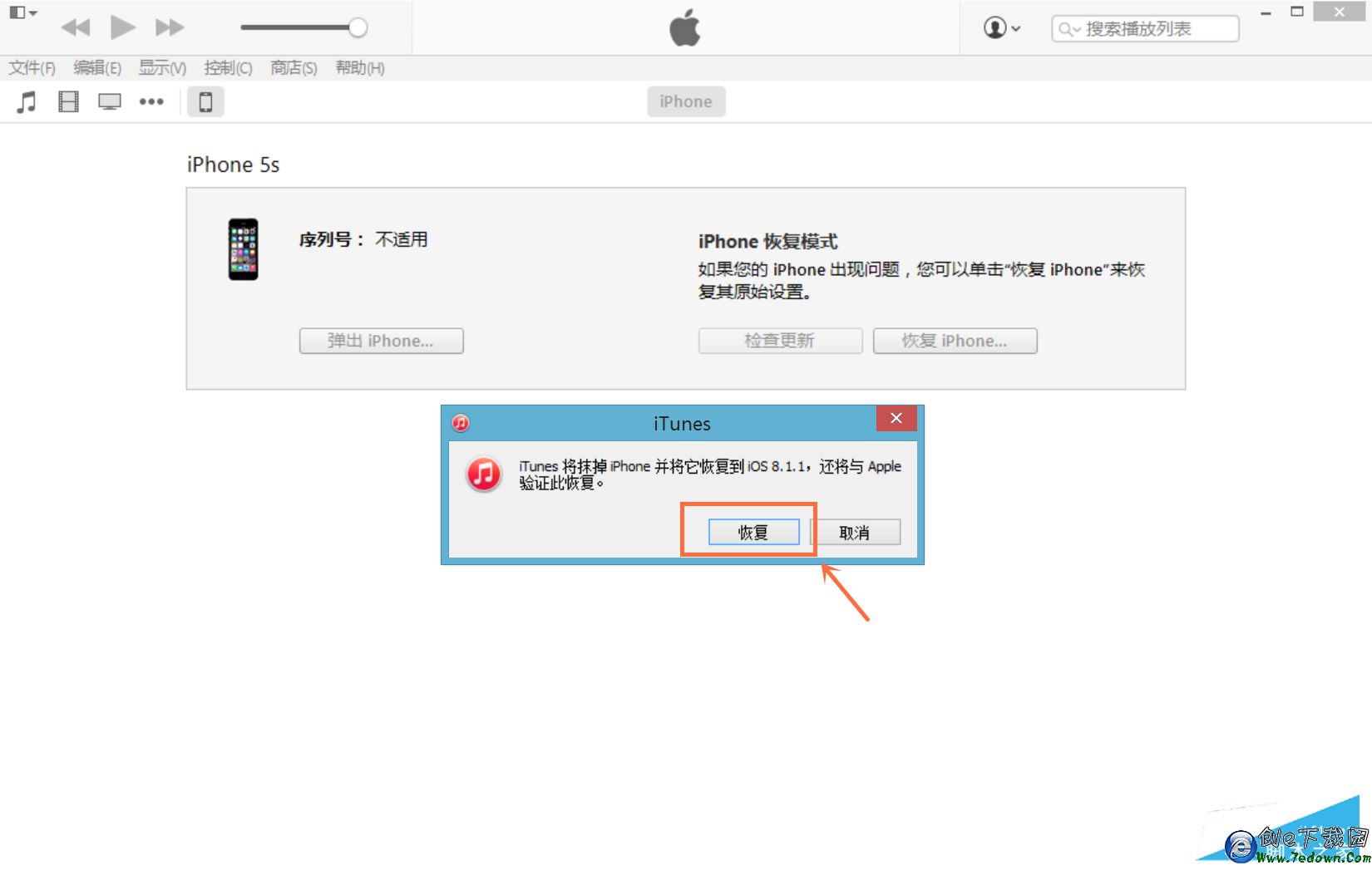 ①、通過iTunes恢復固件會導致清空iOS設備上所有的資料,建議先備份好重要資料。