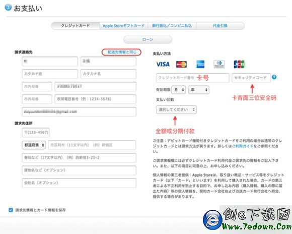 ▼ 蘋果日本官網支持用Visa、MarsterCard、美國運通的信用卡、JCB等付款,填寫無誤後點擊綠色按鈕確認就可以了。