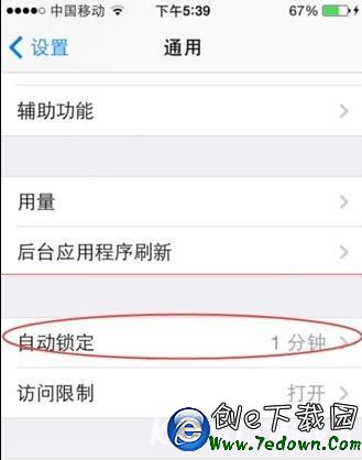 3、通用裡有自動鎖定,這裡有默認的自動鎖定時間,可以更改。