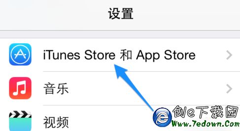 2、在設置列表中找到 iTunes Store 和 App Store 一欄,點擊進入,如圖所示