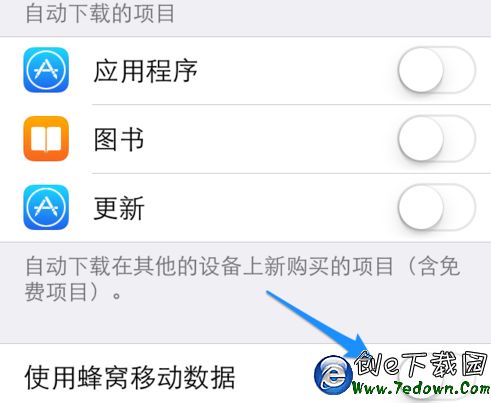 5、另外,建議大家把位於底部的“使用蜂窩移動數據”這項關閉。這個功能太可怕了,如果在開啟了自動更新時,在沒有 Wi-Fi 的時候會使用我們的流量來更新應用軟件。