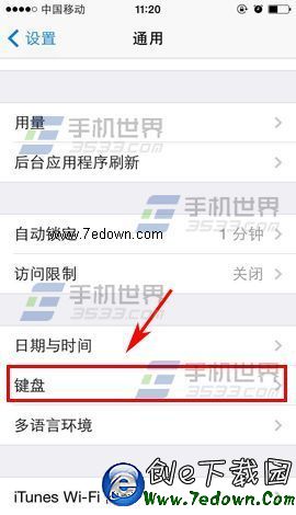 1)在iPhone6的設置界面點擊通用進入,找到並點擊【鍵盤】,進入後再點擊【鍵盤】。(如下圖)
