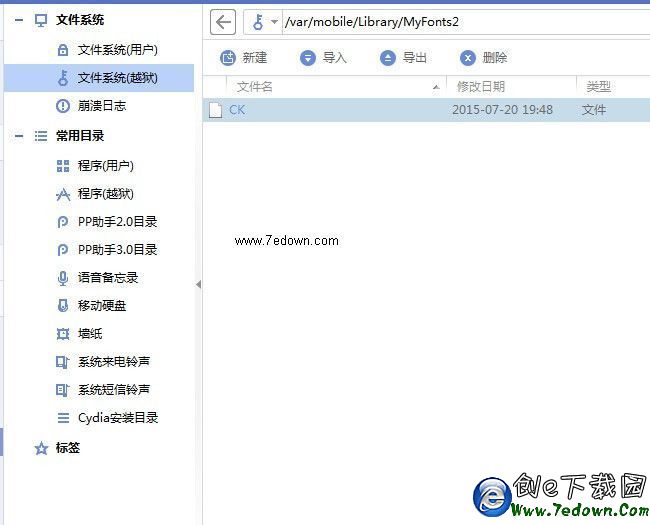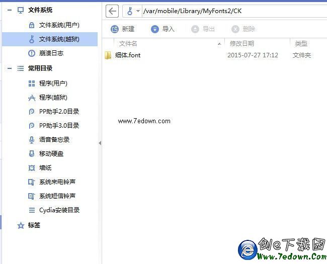 然後訪問iPhone越獄路徑:/var/mobile/Library/MyFonts2(剛裝的可能不存在這個路徑,需要自己創建)