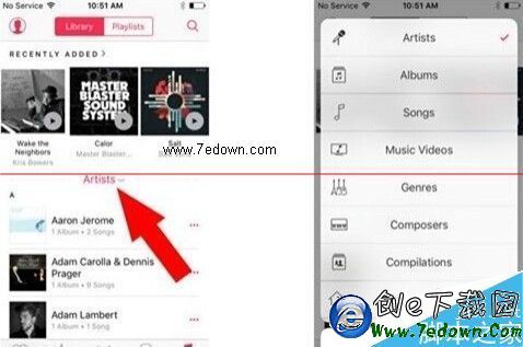 三、打開iOS設備上的“音樂”應用,選擇“我的音樂”,點擊“藝術家”欄目就可以看到“家庭共享”功能了。