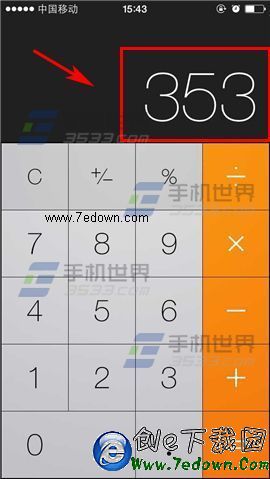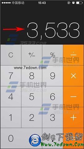 打開iPhone6的計算器,輸入好數字後,在輸入框【向右】滑動,就會刪除最後一個數字,是不是很簡單呢?(如下圖)