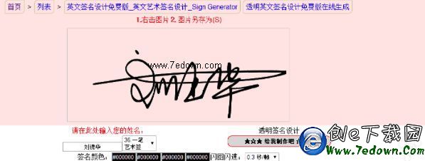 第一步:先去藝術簽的網站上設計自己喜歡的簽名,設計好了之後,右鍵保存於桌面