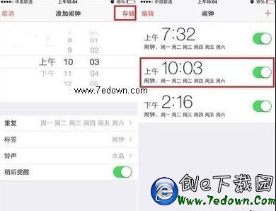 3、設置好重復時間後,點擊左上角返回,然後點擊右上角的【存儲】,就可以看到已經設置好的鬧鐘了。