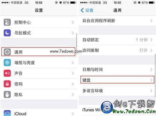 第一步:首先我們要點擊設置,然後選擇通用,進入之後向下滑動菜單找到鍵盤選項。點擊進入鍵盤之後會發現在這個菜單下還有一個鍵盤選項,點擊進入。