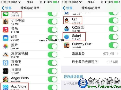 第四步:通過系統的移動網絡了流量監控可以看出,筆者測試的這款iPhone使用流量相對比較多的是“微信”、“QQ”、“App Store”和“Safari”這些經常聯網的軟件。