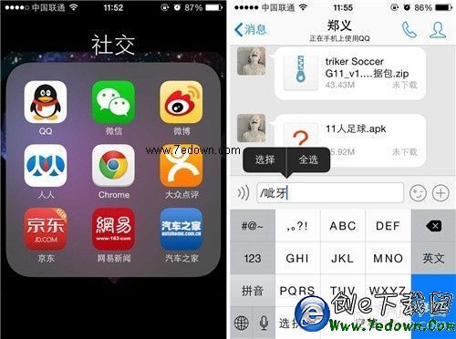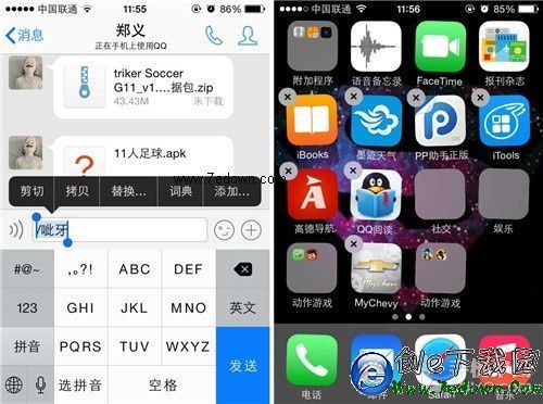 第二步:選好之後我們就可以退出QQ了,之後選中某個應用文件夾,長按該文件夾幾秒,該文件夾就會晃動起來,之後打開應用,點擊上方右側的刪除圖標,刪除文件夾名稱,之後點擊屏幕然後選擇粘貼前面拷貝的內容。